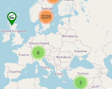 Jeder Punkt ist ein Shelter. Klickt man auf den Punkt, findet man Beschreibungen über