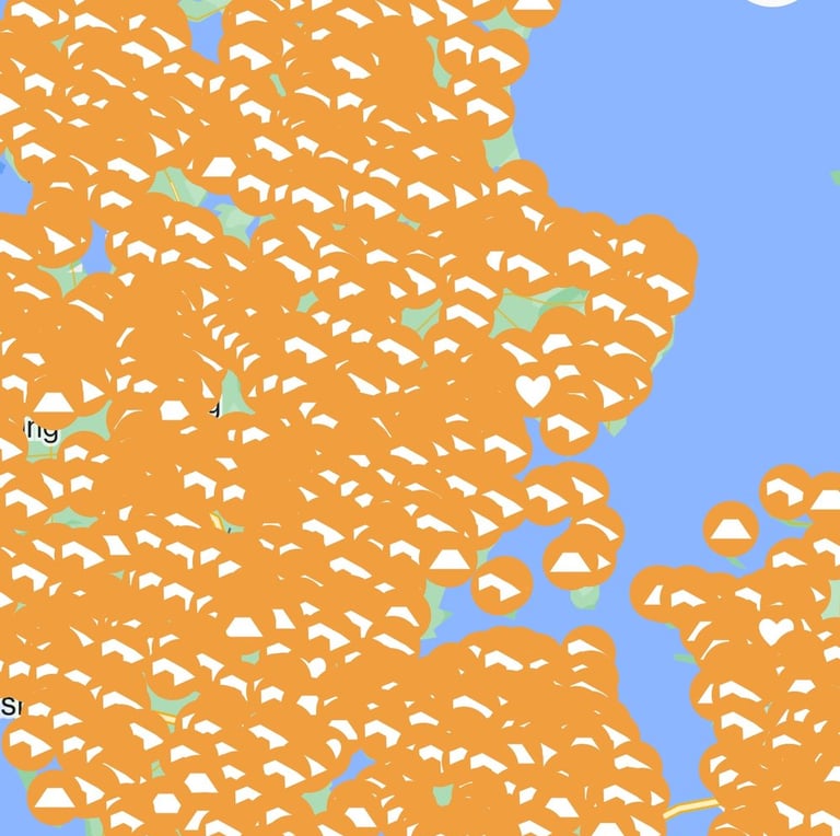 Jeder Punkt ist ein Shelter. Klickt man auf den Punkt, findet man Beschreibungen über